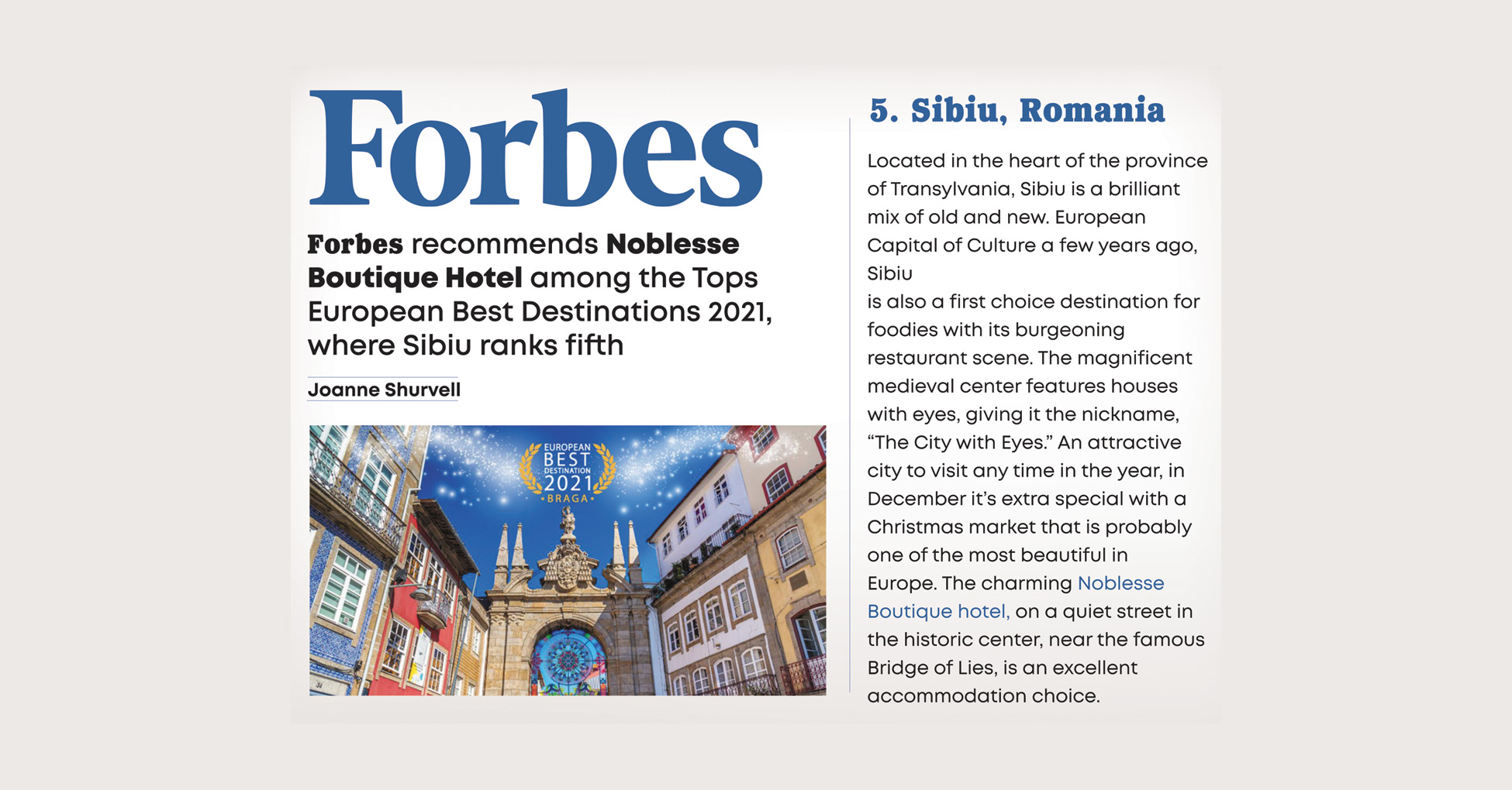 Noblesse Boutique Hotel is the choice made by travellers wishing to find comfort and an experience rising to the highest international standards, combining rafinery and tailored services for each guest.